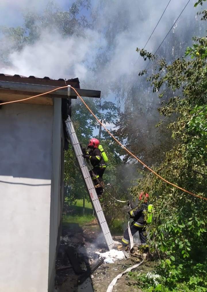 У приватному господарстві вогнем знищено господарську будівлю, піднавіс та 10 м³ дров. Вогнем пошкоджено покрівлю на площі 15 м² господарської будівлі. Врятовано поруч розташований житловий будинок та господарську будівлю. Причина та збитки встановлюються.
