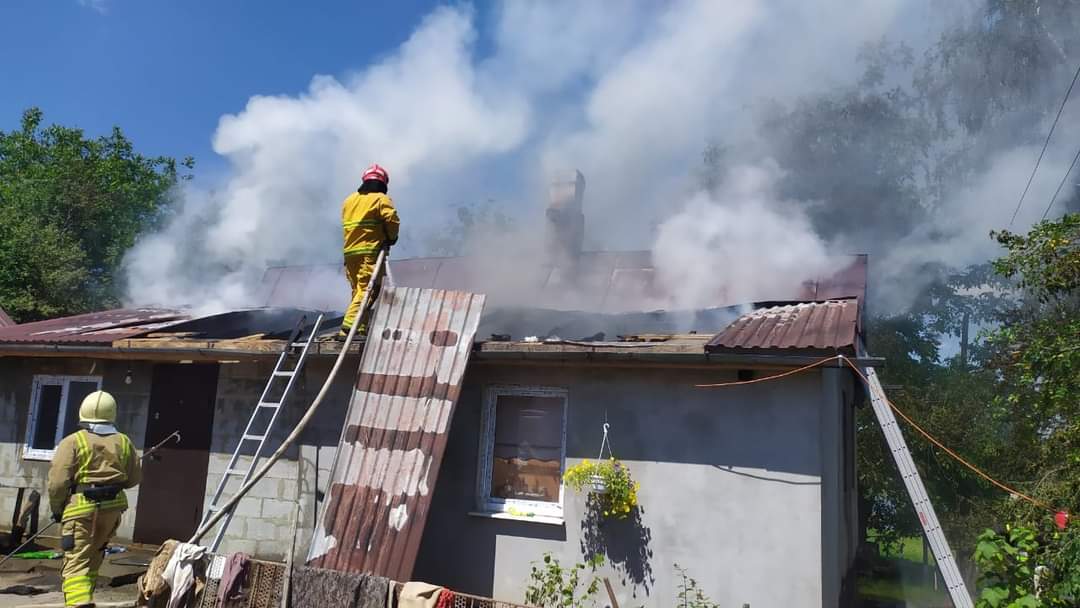 У приватному господарстві вогнем знищено покрівлю та перекриття житлового будинку. Пошкоджено меблі та речі домашнього вжитку Причина та збитки встановлюються.