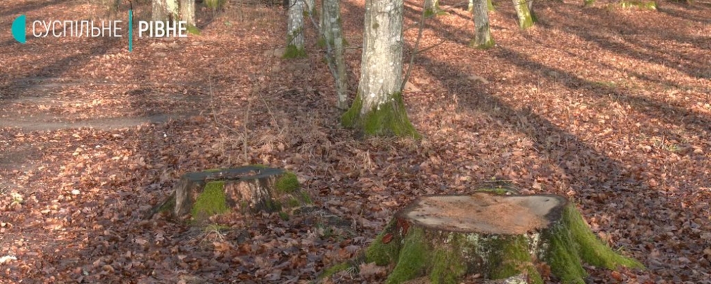 Від багаторічних дубів у 73-му кварталі Костопільского лісництва лишилися пеньки. Дмитро Дмитрієв розповідає, що звернув увагу на них 20-го жовтня, коли разом з родиною заїхали сюди велосипедами. На думку чоловіка, лісівники зрізали здорові дерева та лишили хворі. Спершу нарахував вісім пеньків, наступного дня – не менше 24-х.