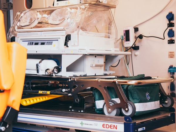 У машині швидкої допомоги є вся необхідна комплектація для транспортування новонароджених, моніторингу життєвоважливих функцій, портативний апарат ШВЛ та пристрій для підігріву інфузійних розчинів.