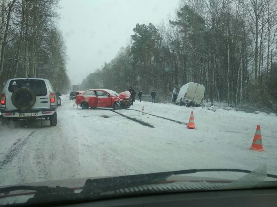 Три легкових авто зіткнулися з мікроавтобусом сьогодні зранку на автошляху «Городище-Рівне-Старокостянтинів». За допомогою до медиків звернулися троє осіб, серед яких чотиримісячна дитина.
