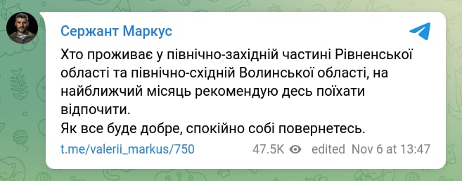“Друзі, на півночі Рівненщини – все спокійно. Жодних змін по той бік державного кордону не спостерігаємо.
