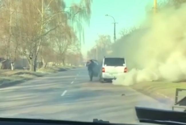 Біля Рівного димить бус (ВІДЕО)
