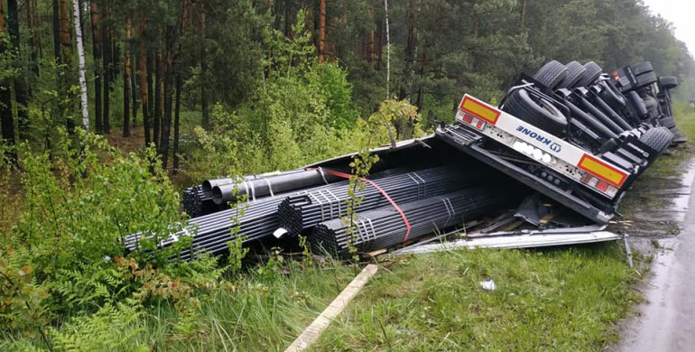 Рятувальників викликали для надання допомоги поліцейським. Автомобіль перевозив металеві труби вагою приблизно 20 т. Водій вантажівки в ДТП не постраждав і від госпіталізації відмовився.