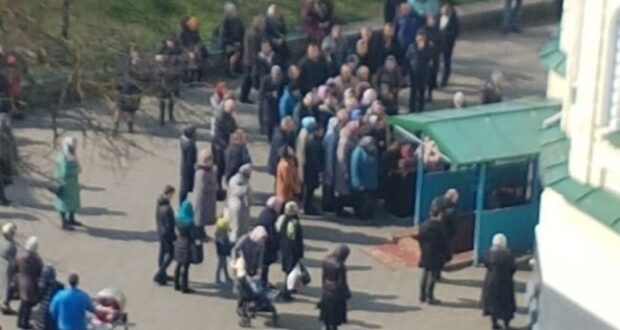 Біля Свято-Воскресенського собору у центрі Рівного прихильники УПЦ МП ігнорують карантин