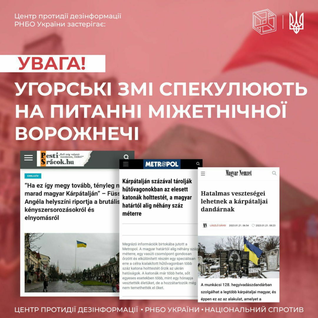 Всі меседжі, поширені угорськими медіа, широко тиражуються у ЗМІ рф та спрямовані винятково на розпалювання міжетнічної ворожнечі між українцями та угорцями на Закарпатті.