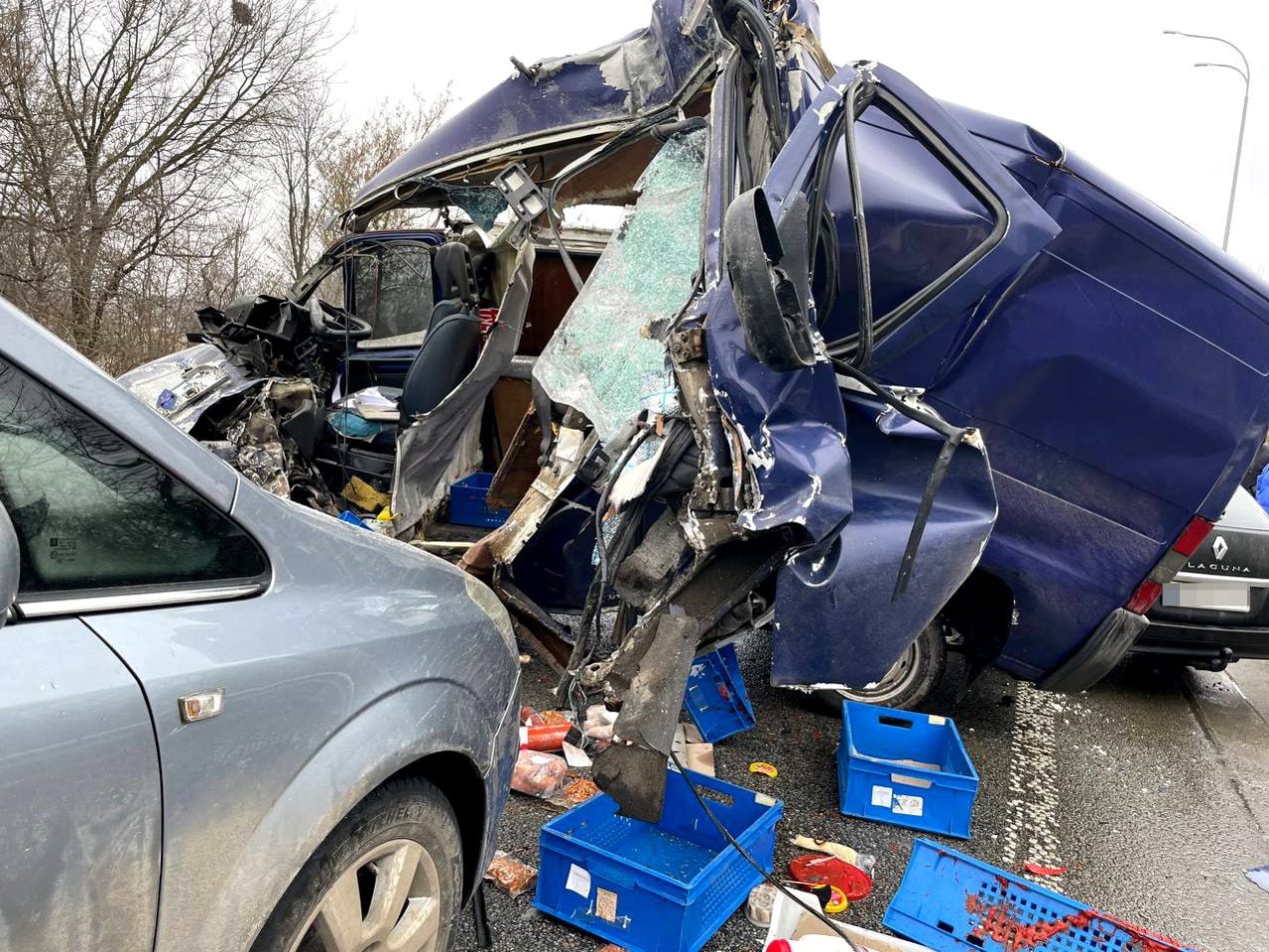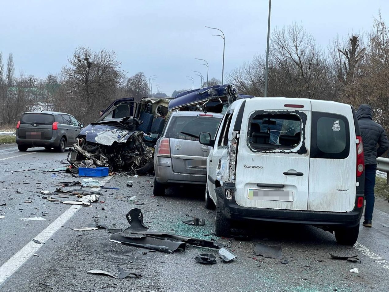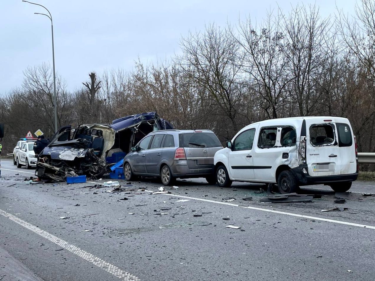 Попередньо відомо, що водій буса «Fiat Ducato», здійснюючи маневр обгону, на смузі зустрічного руху зіткнувся із вантажівкою. Крім того, механічні ушкодження отримали іще три автівки.