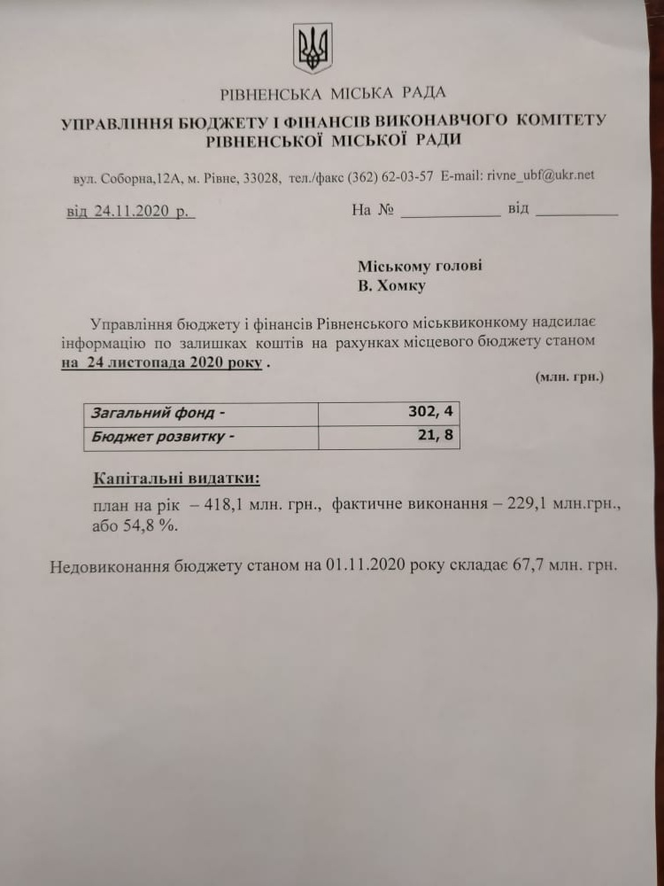 Міський голова Рівного Володимир Хомко вкотре наголосив, що лишає своєму наступнику Олександру Третяку «місто без фінансових проблем».