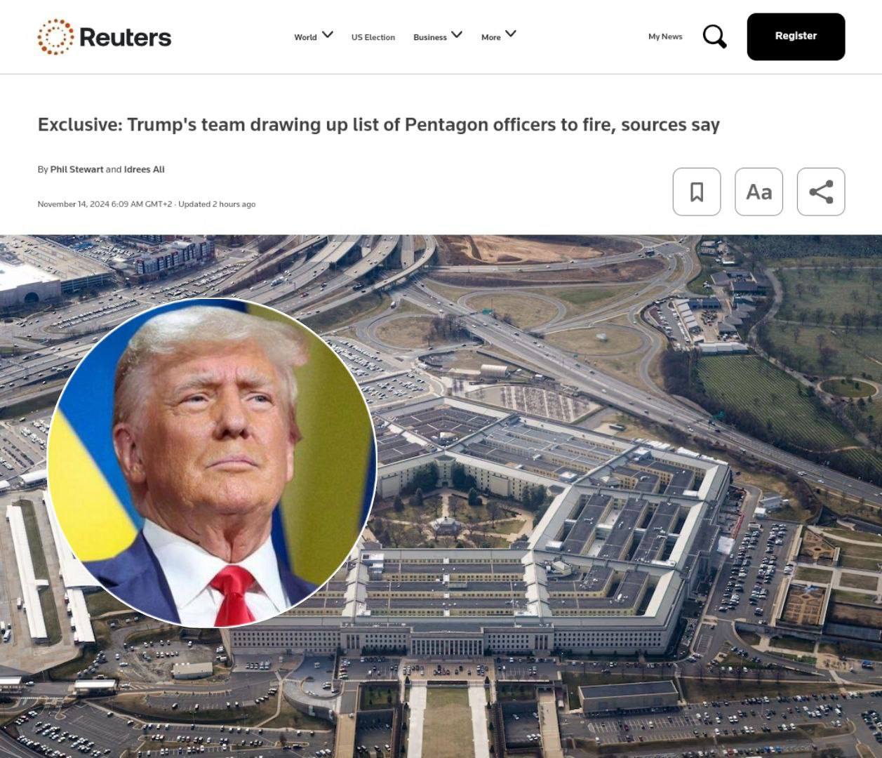 Оприлюднення планів звільнення вищого керівництва Збройних сил США відбулося наступного дня після того, як Трамп обрав своїм міністром оборони Піта Хегсета, коментатора Fox News і ветерана, який заявив про готовність провести чистку в Пентагоні.
