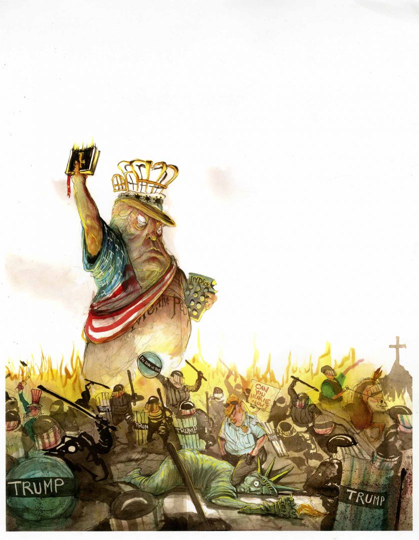 Третя категорія – сатиричний малюнок (EDITORIAL) на актуальні соціально-політичні теми. Як і в попередні роки багато малюнків було присвячено президенту США Дональду Трампу, чий термін закінчився в минулому році. Не пропустили карикатуристи і смерть легендарного футболіста Дієго Марадони.