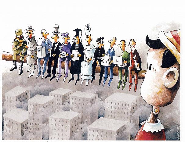 Перший приз отримав київський карикатурист Костянтин Казанчев, що посадив на витягнутий ніс Піноккіо компанію наших сучасників, які представляють різні соціальні групи, що впливають на громадську думку.
