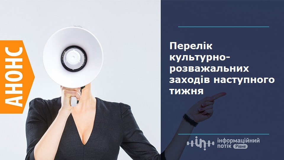 Рівненське упавління культури і туризму запрошує на безліч культурно-мистецьких заходів, що відбудуться наступного тижня.