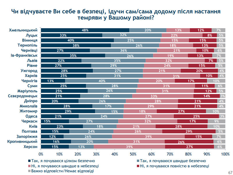 Абсолютну безпеку відчувають 27% рівнян. У той час як найбезпечнішим виявився сусідній обласний центр – Хмельницький.