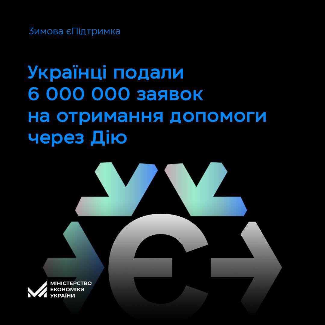 Понад 6 млн заявок на отримання «Зимової єПідтримки» залишили українці через Дію – з них майже 1,6 млн було подано на дітей.