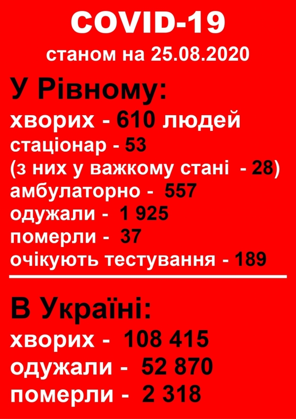 Між тим, амбулаторно лікують 557 інфікованих коронавірусом мешканців Рівного.