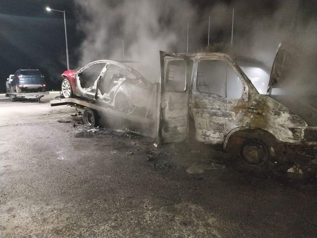 Вогнем знищено легковий автомобіль марки TESLA та автовоз марки IVEKO.