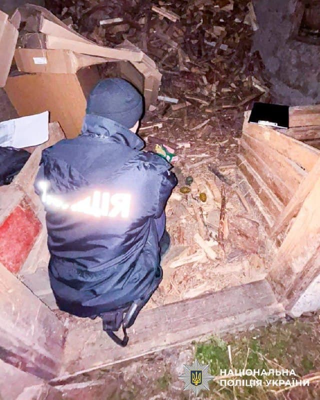 У підсобному приміщенні чоловік зберігав два корпуси гранат Ф-1 із запалами, ручну гранату М67 та близько 150 патронів калібру 5,45 мм.