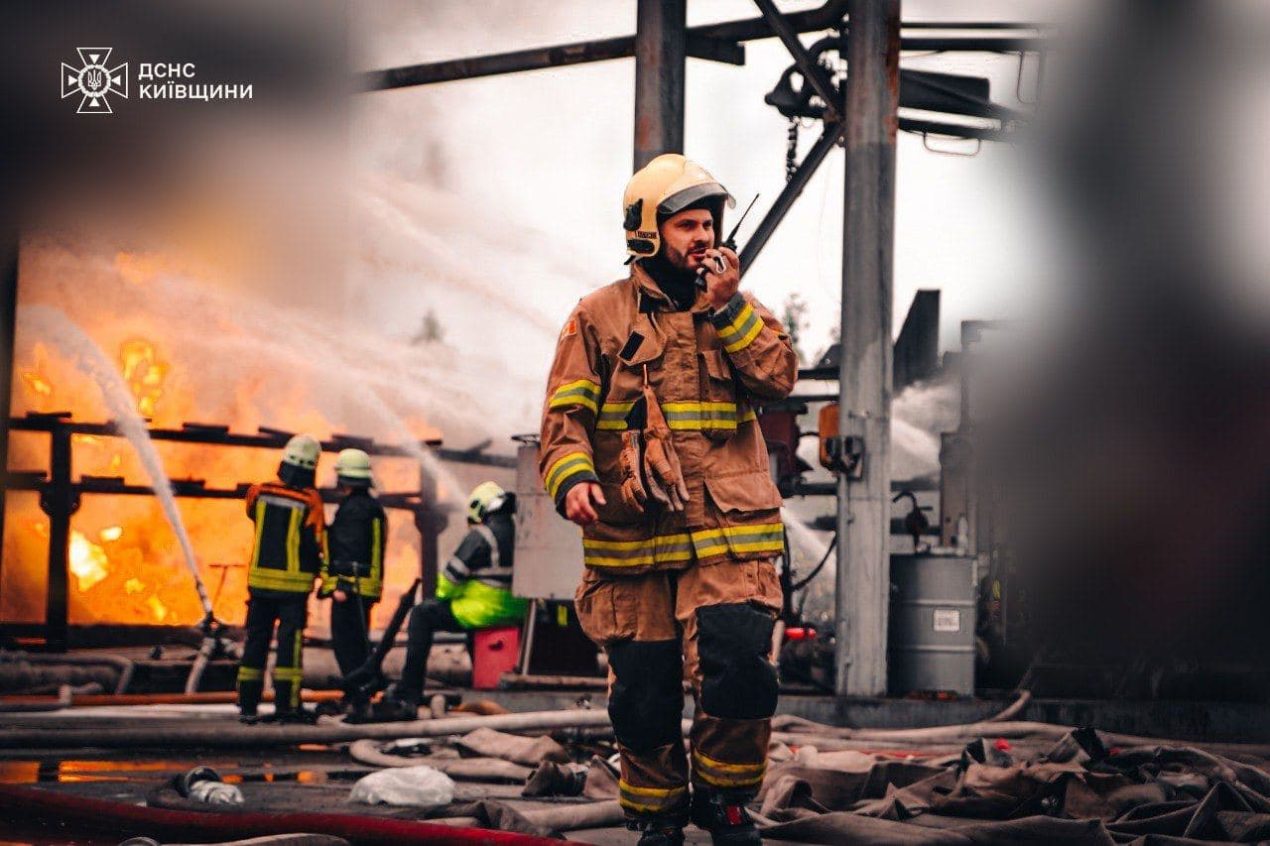 На Київщині вже 3 день триває гасіння пожежі на промисловому об’єкті, що виникла внаслідок атаки РФ – ДСНС.