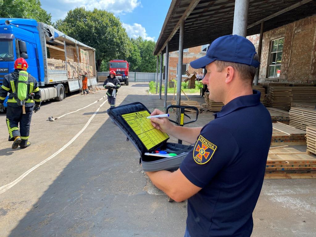 Під час навчань було практично відпрацьовано порядок дій при пожежі з працівниками підприємства на початковій стадії пожежі. Перевірено протипожежне водопостачання, можливість аварійного знеструмлення об’єкту, можливі шляхи в’їзду на територію, а також шляхи евакуації і їх відповідність до нормативних вимог.