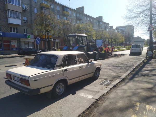 На проспекті Миру у Рівному тривають ремонтні роботи.