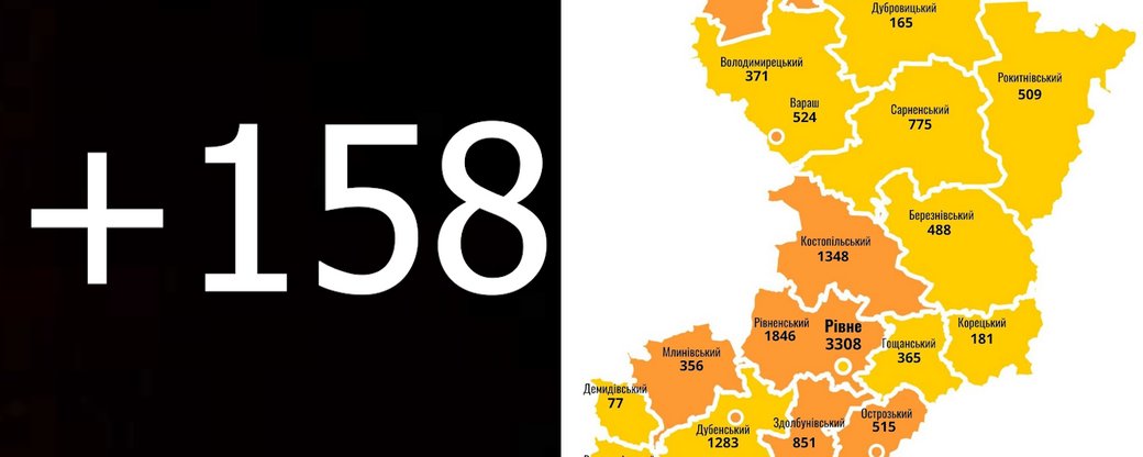 На Рівненщині 158 нових підтверджень інфікування коронавірусом