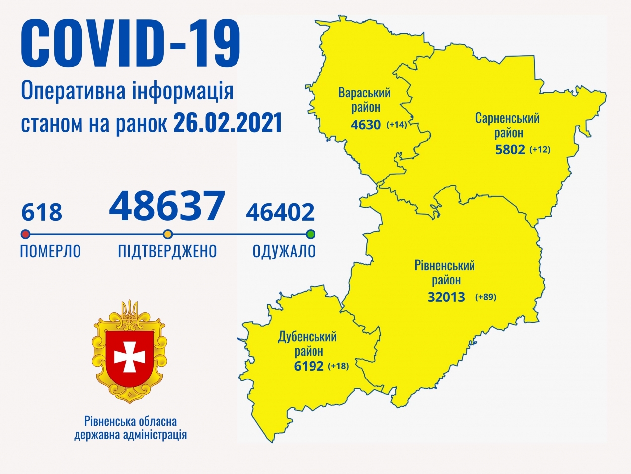 Таким чином в Рівненській області наразі маємо 48 637 випадків захворювання на коронавірусну хворобу.