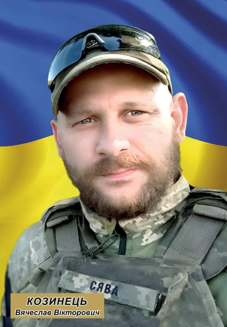В’ячеслав Козинець народився в місті Ніжин на Чернігівщині. Здобув професію електрозварювальника. Працював у столиці. А після одруження молода сім’я переїхала до Новомильська на Рівненщину. В’ячеслав працював на меблевій фабриці у Квасилові. Був добрим, щирим, мав багато друзів. Любив займатися різьбою по дереву, писав вірші. Разом з дружиною виховував трьох доньок. До Сил оборони України захисника мобілізували у серпні 2023 року. Проходив службу в 132-му окремому розвідувальному батальйоні у Дніпрі, згодом – на Запорізькому та Донецькому напрямках. Був нагороджений нагрудним знаком «Золотий Хрест» Головнокомандувача ЗСУ та відзнакою Президента «За оборону України». У вересні 2024-го вирушив на навчання до Великої Британії. Повернувшись, знову став у стрій. 10 листопада 2024 року молодший сержант В’ячеслав Козинець загинув під час виконання бойового завдання на Донеччині. Йому було 35 років… Поховали військовослужбовця у селі Новомильськ Здолбунівської громади.