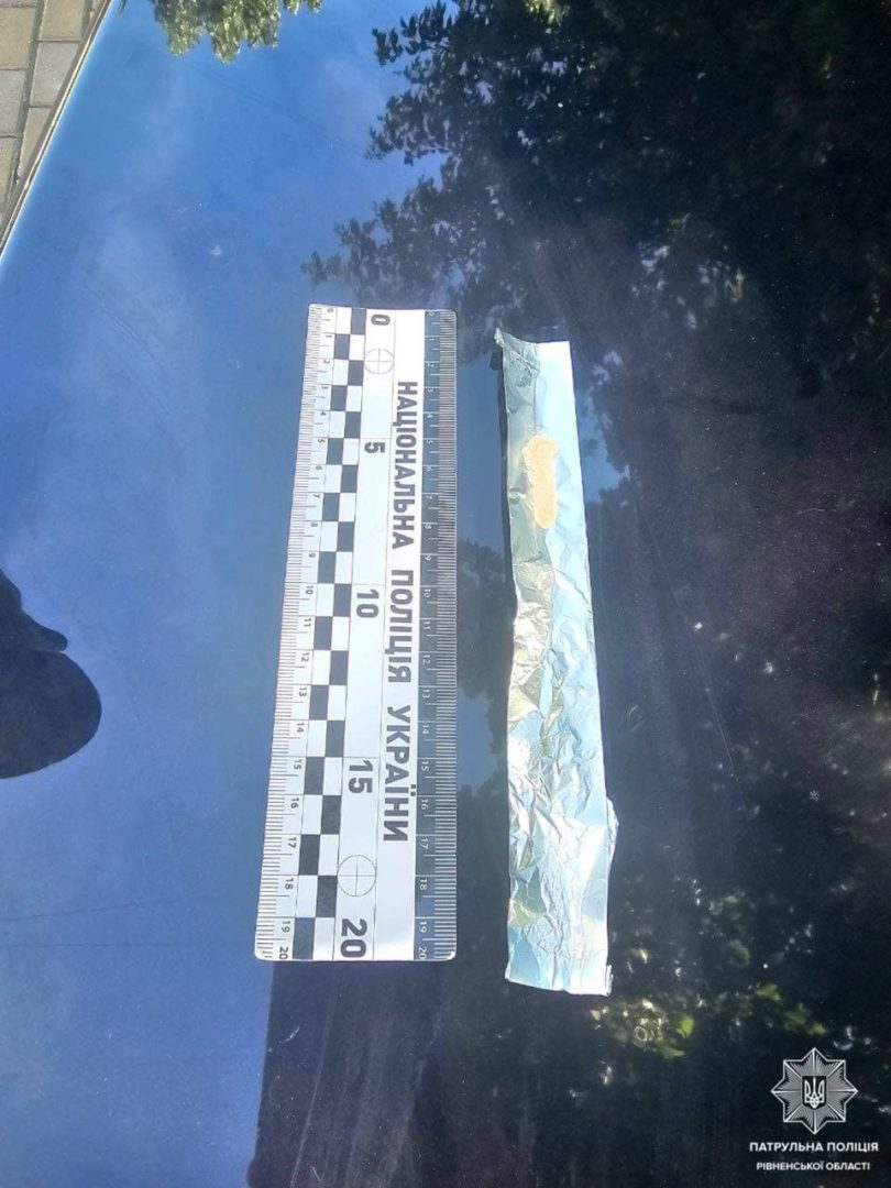 Також під час поверхневої перевірки поліцейські виявили у водія пристрій для вживання наркотичних речовин та, ймовірно, наркотичні речовини, які були загорнуті у фольгу.