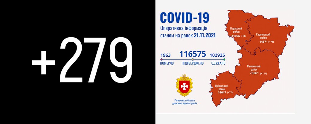На Рівненщині за минулу добу, 20 листопада, лабораторно підтвердили 279 нових випадків інфікування COVID-19. Про це інформує оперативний штаб при ОДА зранку 21 листопада. Від ускладнень померли сім хворих.
