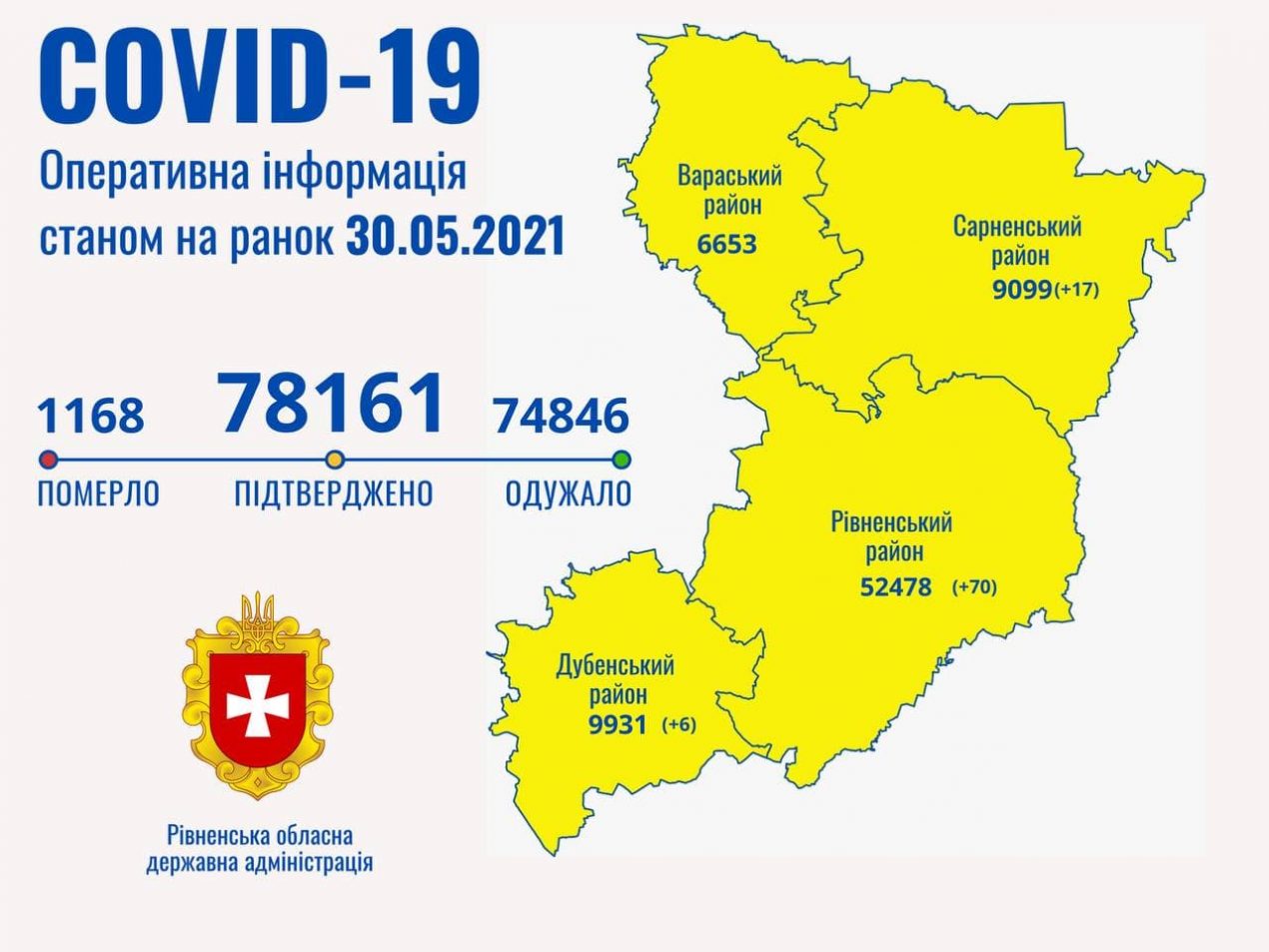 Таким чином в Рівненській області наразі маємо 78161 випадок захворювання на коронавірусну хворобу.