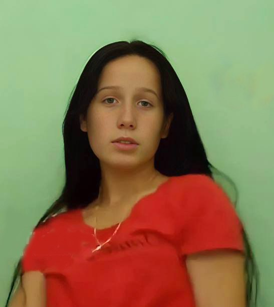 На вигляд дівчині 15-16 років, темне довге волосся, низького зросту, худорлява.