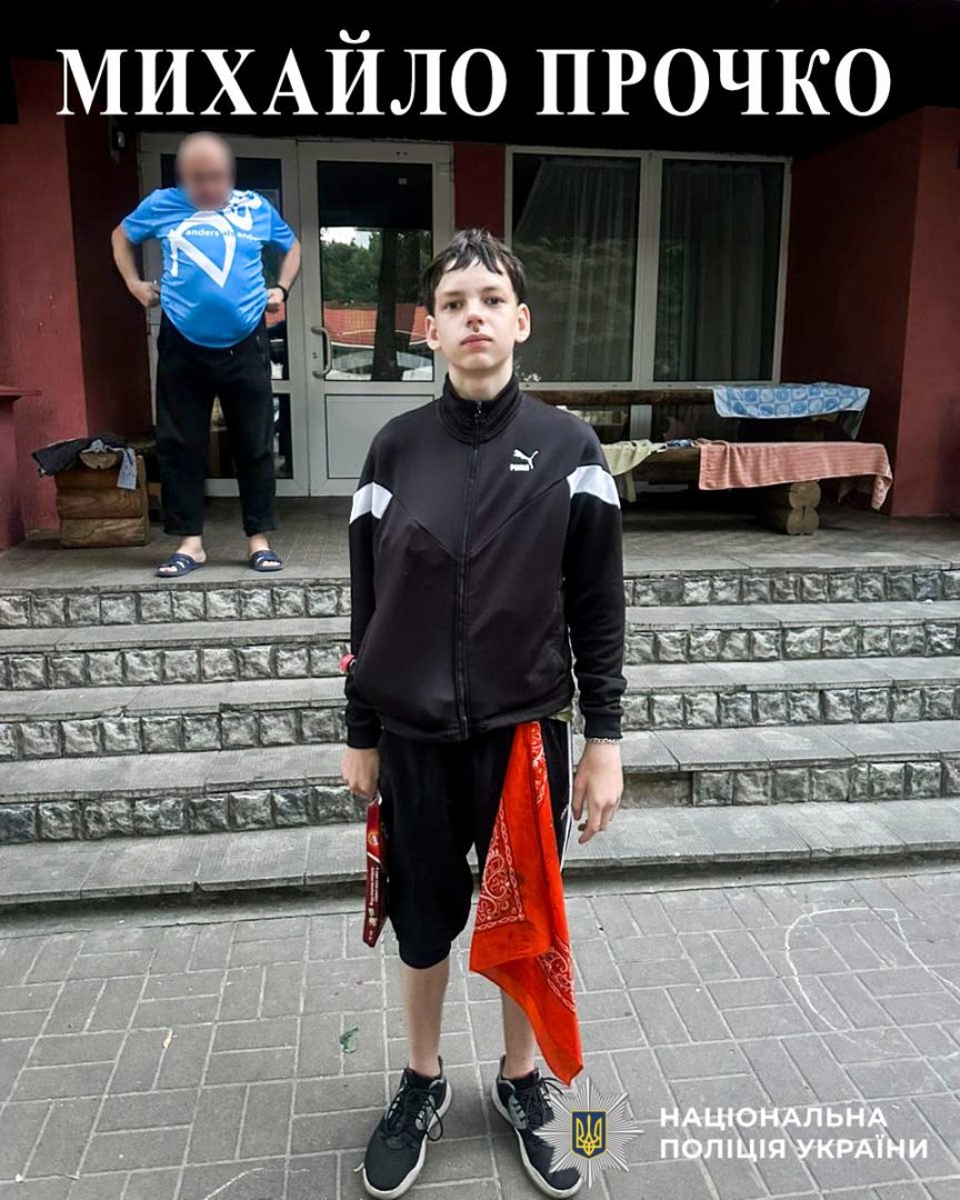 - Прочко Михайло Володимирович, 15 років. Прикмети: чорняве волосся, зріст близько 175 см, худорлявої тілобудови. Був одягнений у камуфляжні штани, чорну футболку, світле худі та чорні кросівки. При собі має чорну сумочку через плече.