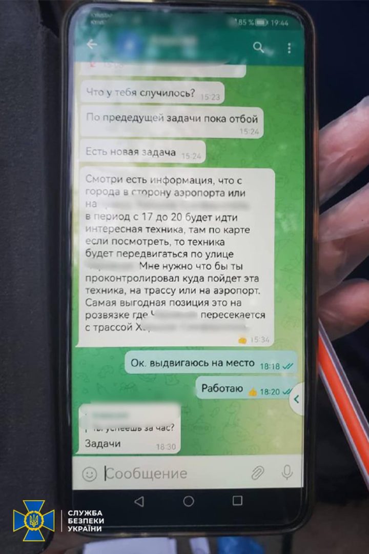Для передачі розвідданих агент застосовував спеціально створений анонімний Телеграм-канал. У своїх «доповідях» зловмисник описував спостереження, супроводжуючи їх фотофіксацією об’єктів та надсиланням координат.