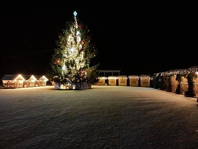 Тут є новорічні фотолокації, ялинка та діє ярмарка.