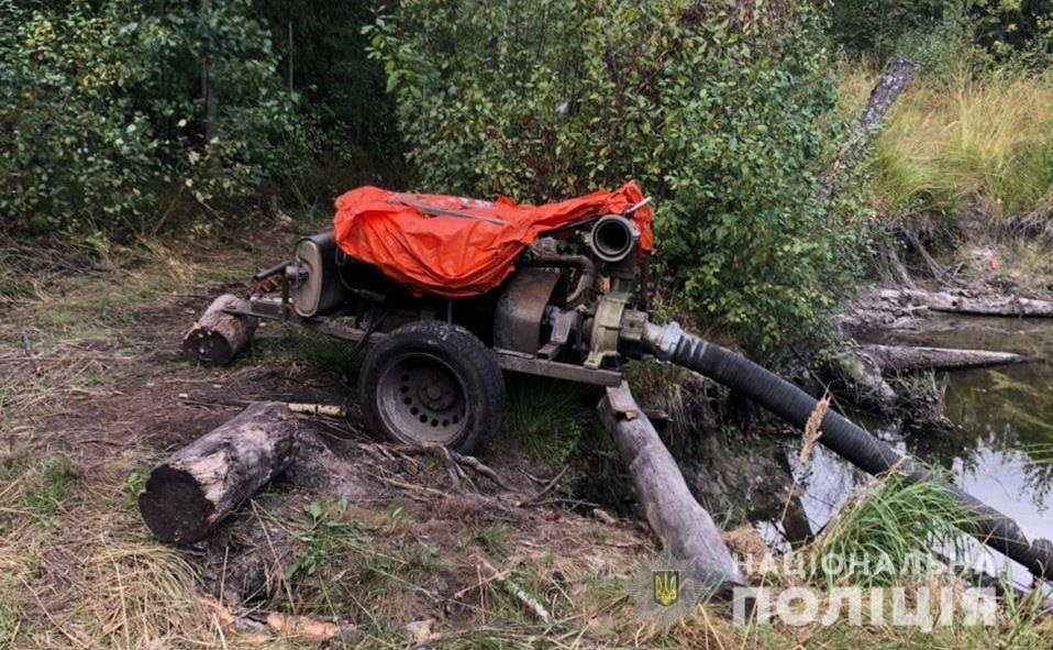 Так, під час огляду території в урочищі «Ями» поблизу села Степангород правоохоронці виявили вісім мотопомп кустарного виробництва та обладнання для незаконного промислу.