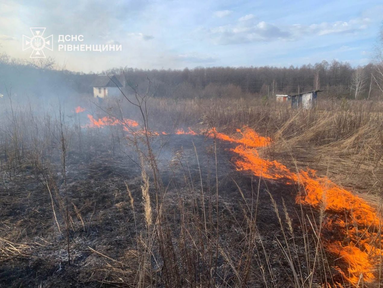 Із настанням весняного потепління на Рівненщині зросла кількість пожеж у природних екосистемах. Лише за минулу добу рятувальники зафіксували 15 загорянь сухої трави та чагарників, які охопили понад 7 гектарів території.