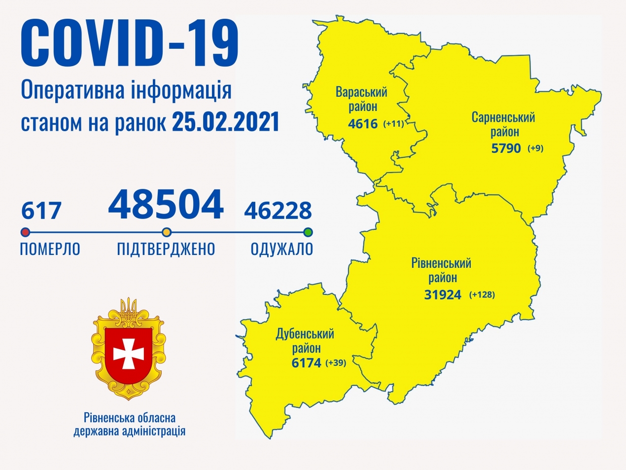 Таким чином в Рівненській області наразі маємо 48 504 випадки захворювання на коронавірусну хворобу.