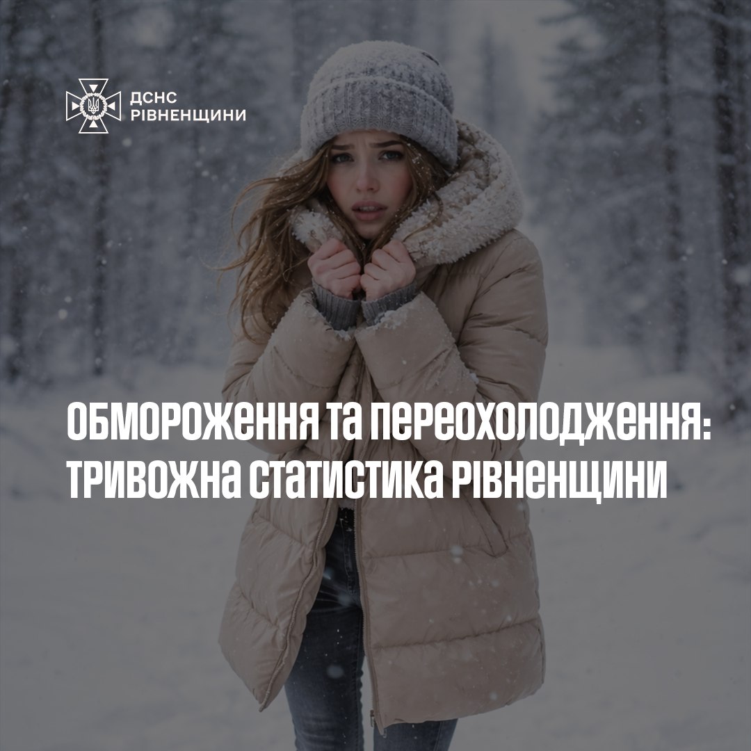 Протягом 19–20 січня в Рівненській області зафіксували чотири випадки обмороження та загального переохолодження. Про це повідомляють екстрені служби.