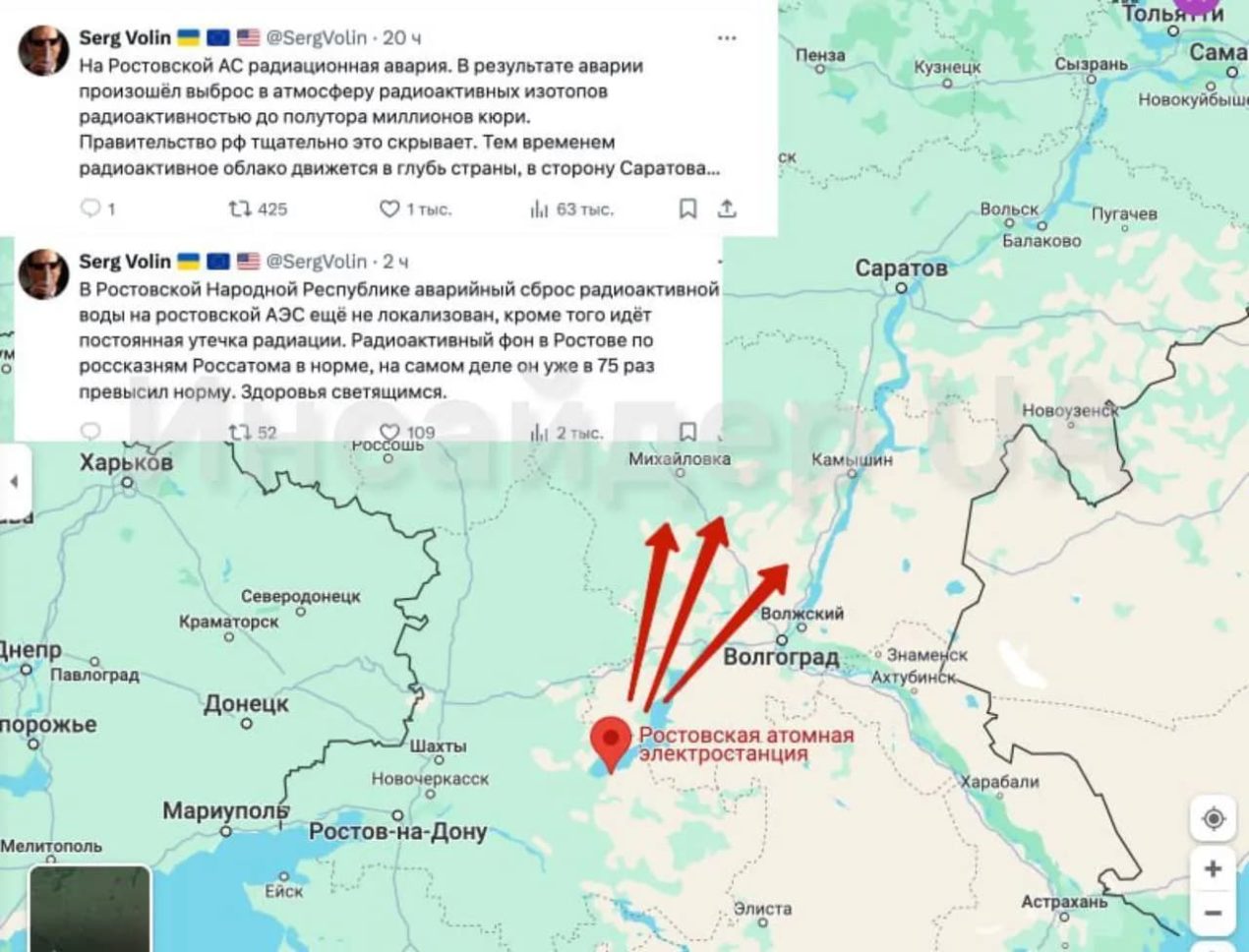 За офіційними даними Росатому, радіоактивне тло в Ростові в нормі. Однак користувачі мережі впевнені, що він уже у 75 разів перевищив норму. Інформацію про ймовірний витік також опублікував керівник Центру протидії дезінформації при РНБО Андрій Коваленко.