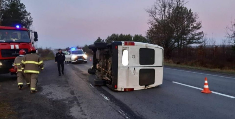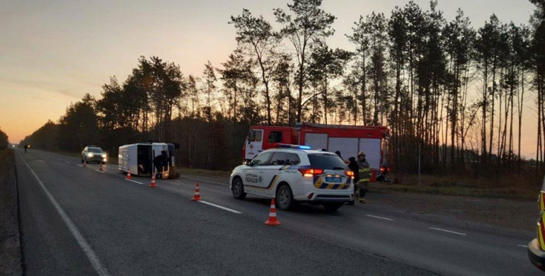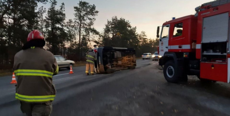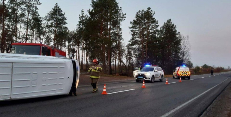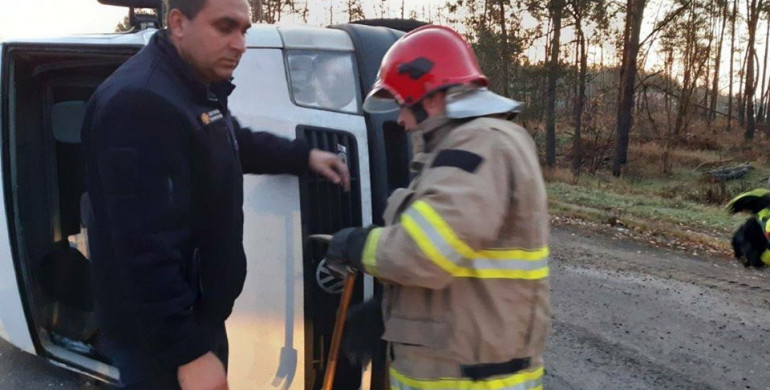 На Сарненщині посеред траси перекинувся бус (ФОТО)