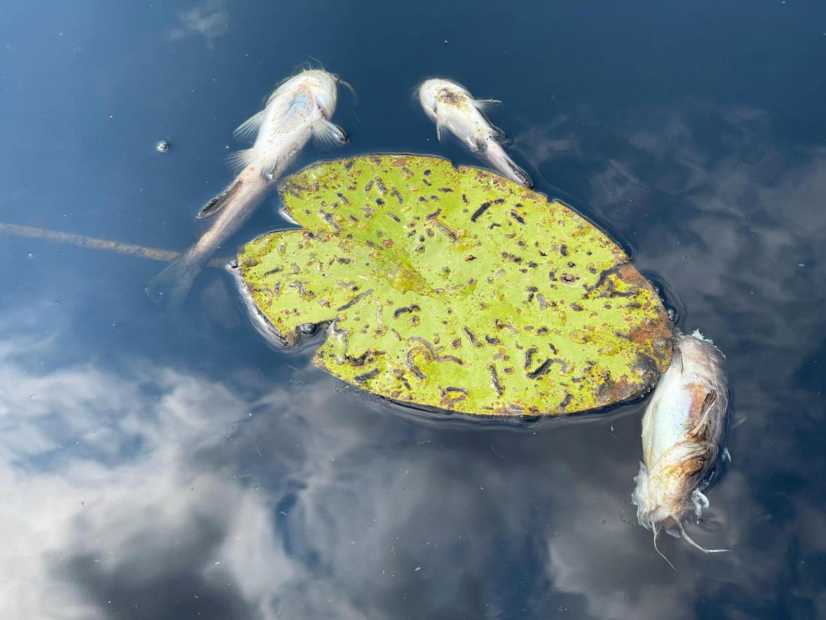 Іван Мулик зазначає, що на поверхні водойми знаходиться багато мертвої малої риби, зокрема більших, краснопірок, судаків, щук та сомів.