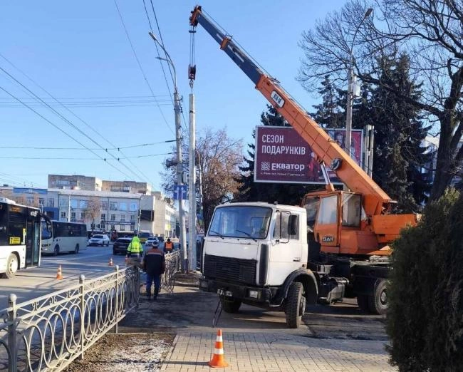 На вулиці Соборній у Рівному замінили аварійні опори на нові металеві
