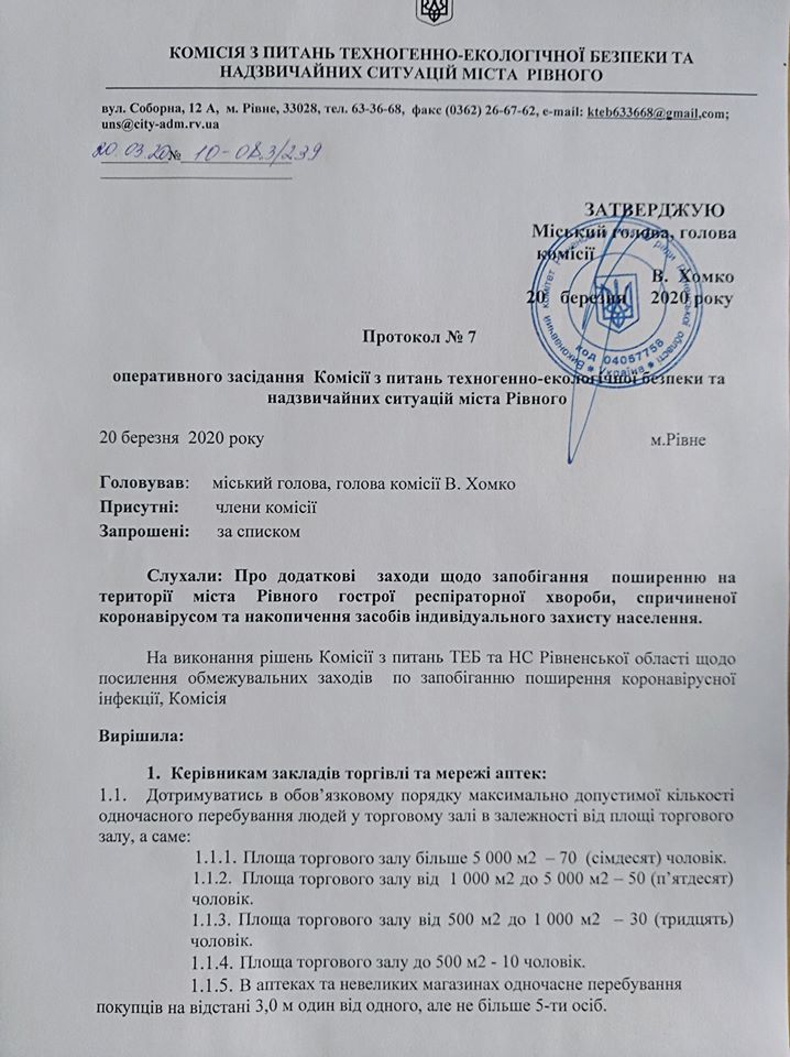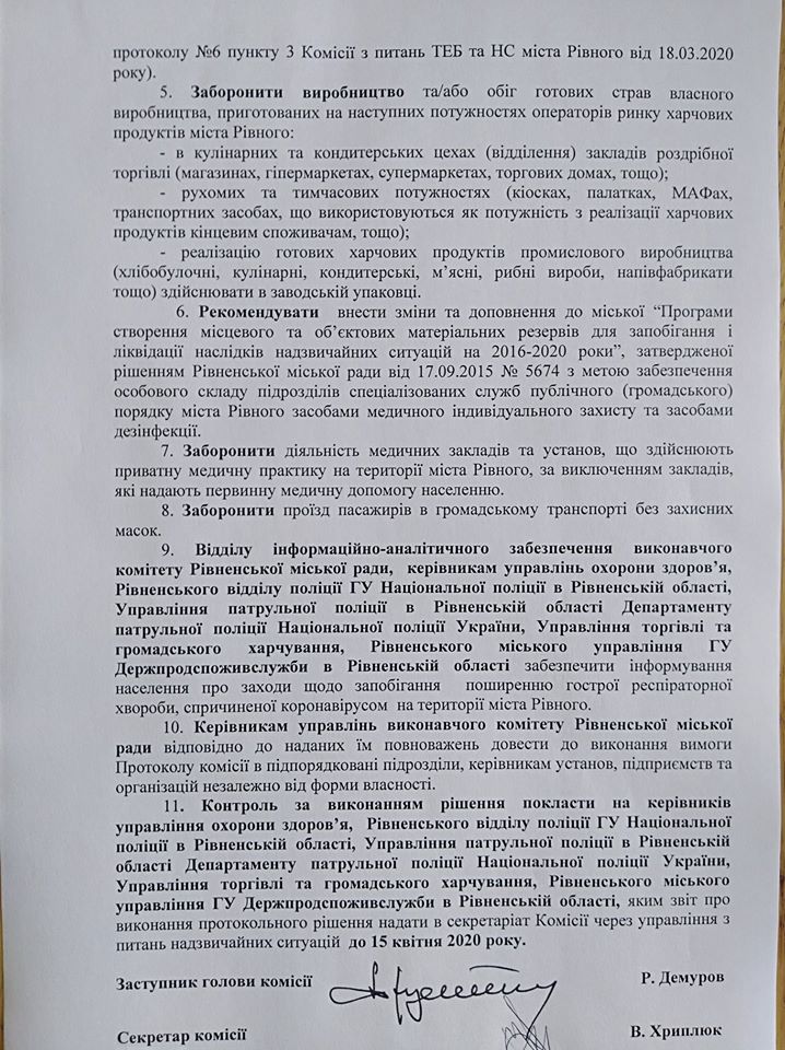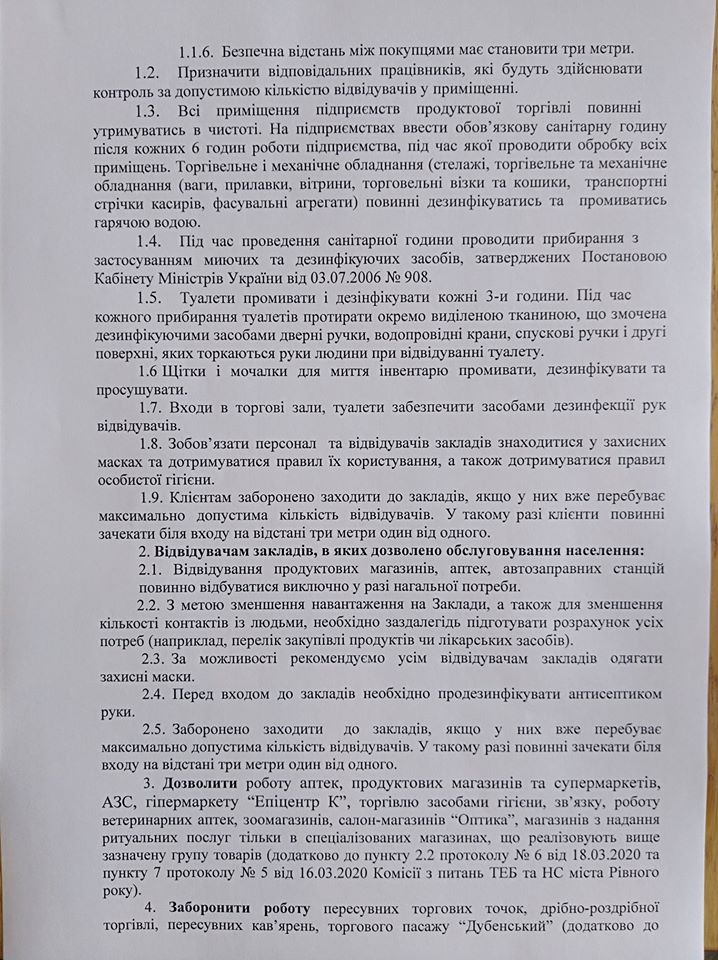 До вашої уваги повний текст протоколу із вказівками міської влади Рівного.