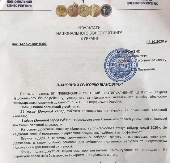 Обласний протипухлинний центр посів високі місця в Національному бізнес-рейтингу