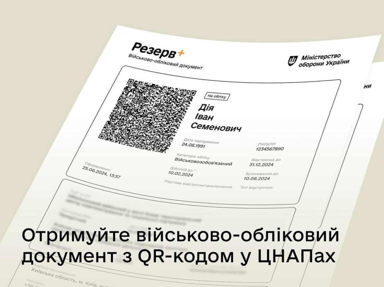 Відтепер жителі Рівненської області можуть отримати військово-обліковий документ з QR-кодом, який підтверджує його дійсність, у будь-якому ЦНАПі регіону. Це безкоштовна послуга, що не потребує відвідування територіальних центрів комплектування.