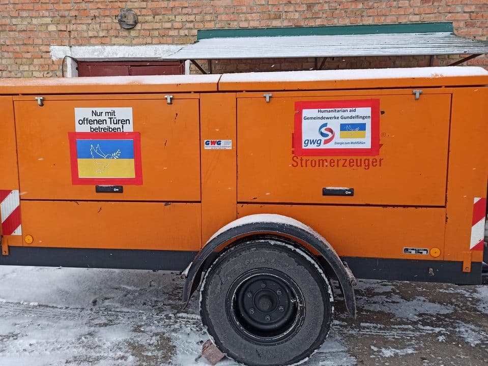 Так, з Гундельфінгена (Німеччина) приїхав генератор, потужністю 56 кВт. Його використовуватимуть у разі відключення світла для потреб Острозького водоканалу.