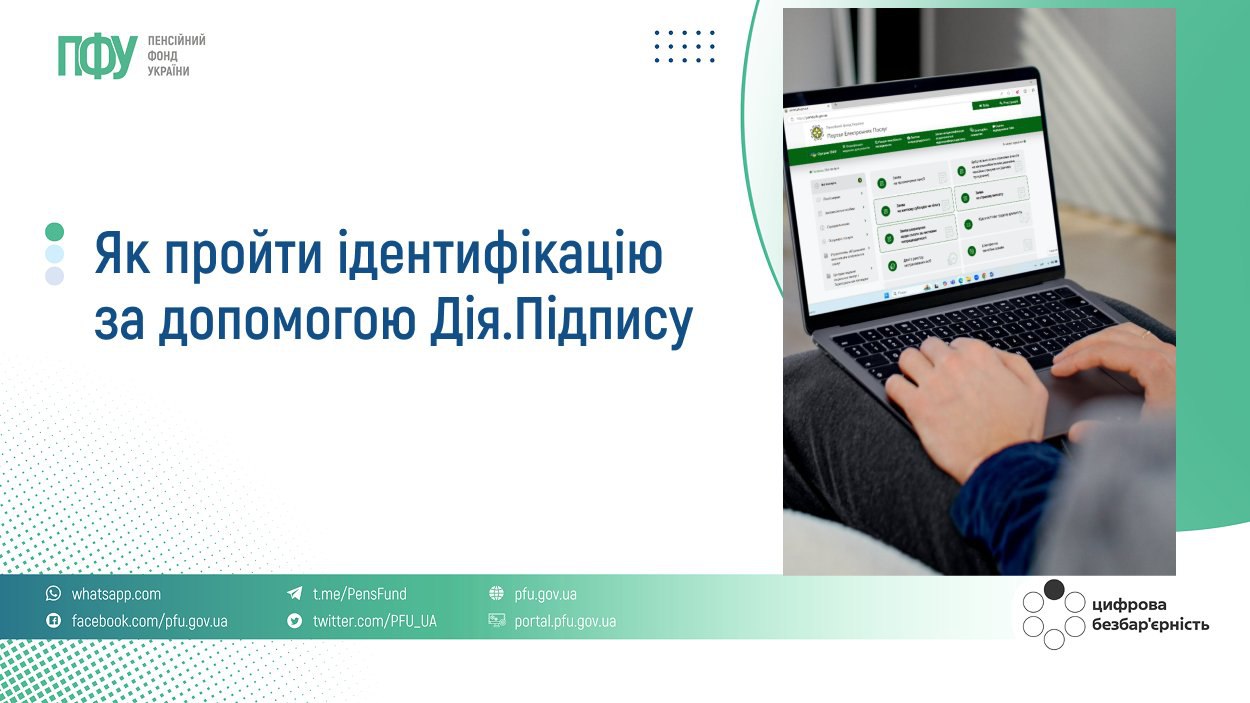 Один із найзручніших способів підтвердження особи — дистанційна ідентифікація через вебпортал електронних послуг Пенсійного фонду України. Для цього можна скористатися кваліфікованим електронним підписом «Дія.Підпис», який створюється за допомогою мобільного застосунку «Дія».