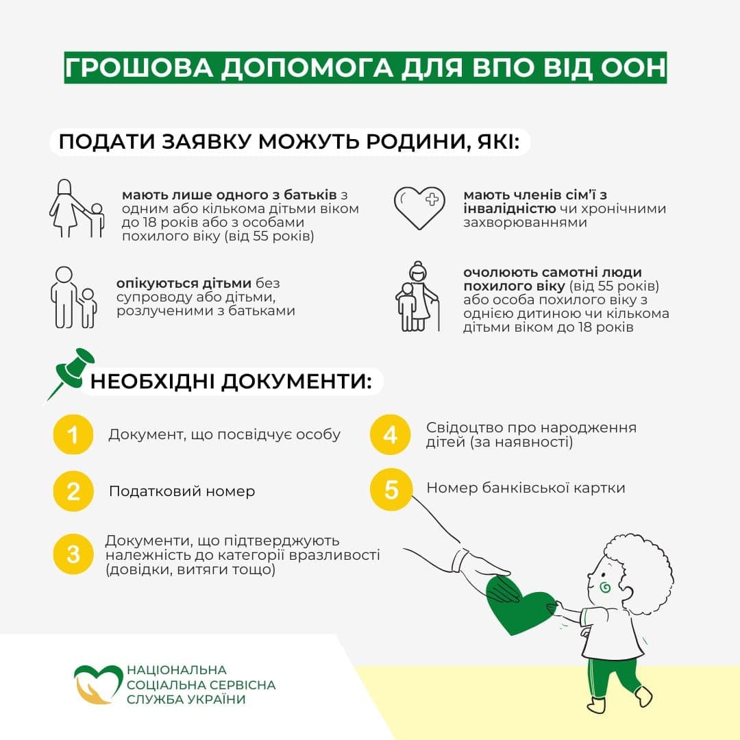 Отримати допомогу можуть люди, які не отримували її раніше від міжнародних організацій, мають дохід, менший за 5400 гривень на члена родини. Зокрема, ті, хто належить до вразливих категорій населення.