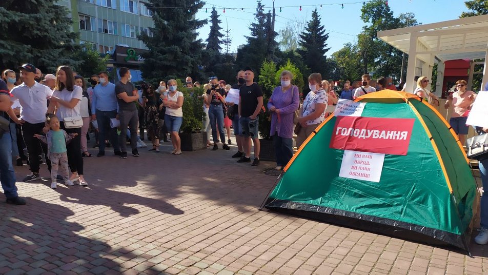 Пікетують під сесією міськради і частина вкладників недобудованих житлових комплексів. Нагадаємо, 11 серпня вони встановили біля Рівненського міськвиконкому намети. Як пояснили тоді учасники акції, люди оголосили голодування, доки міськрада не прийме позитивне рішення щодо їхнього питання.