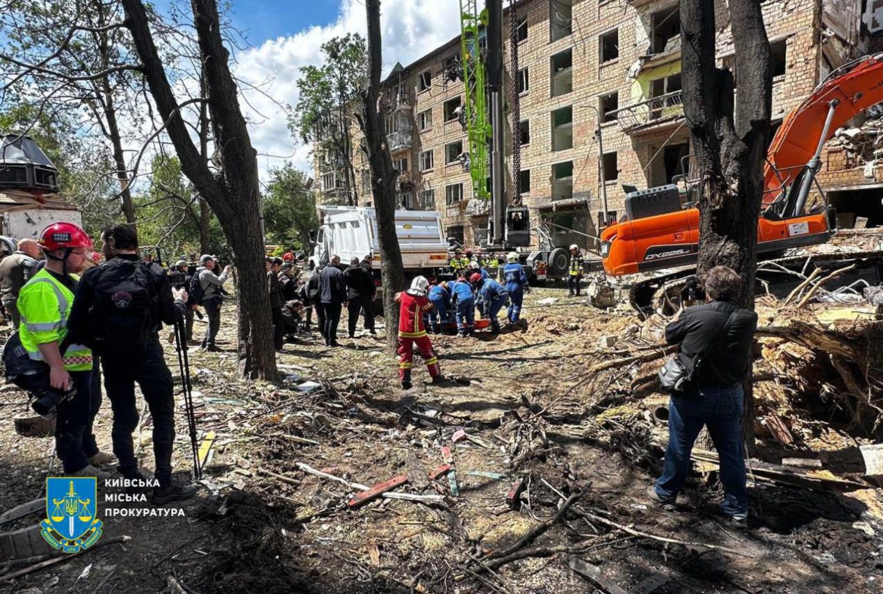 У Києві завершили пошуково-рятувальні роботи на місці удару російської ракети в Шевченківському районі. З-під завалів дістали тіло 11-річної дівчинки. Її матір знайшли раніше.